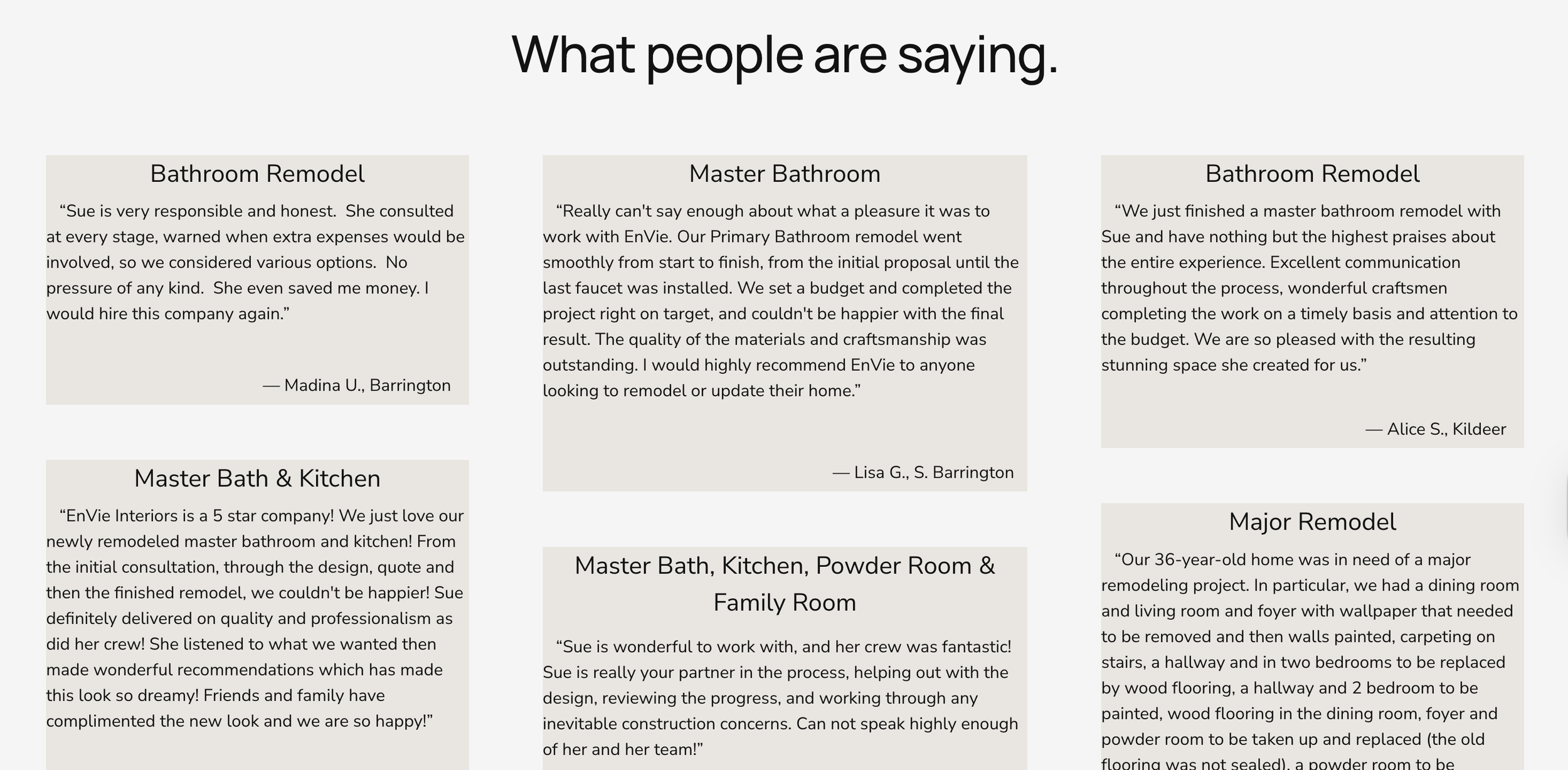 Hear from our clients and see why homeowners trust EnVie Interiors for exceptional results and a seamless remodeling experience.
